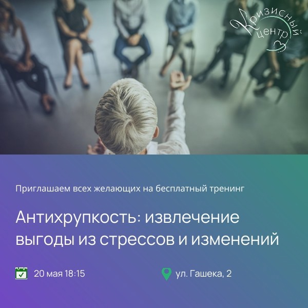Приглашаем вас на социально-психологический тренинг, который поможет научаться использовать стресс и неопределенность для личностного и профессионального роста.