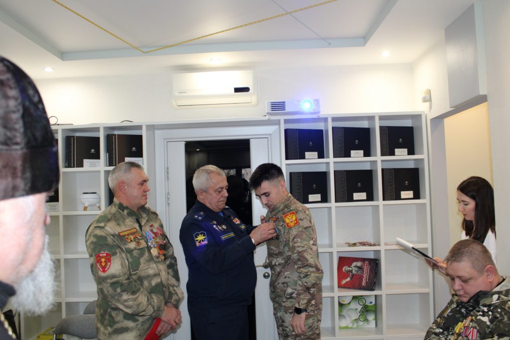 Далее начальник отделения по военно-патриотической работе и работе с ветеранами Военного комиссариата Челябинской области Олег Ведмедь и руководитель общественной организации «Защитники Отечества» Евгений Апокин наградили бойцов, волонтеров, активистов общественными медалями.