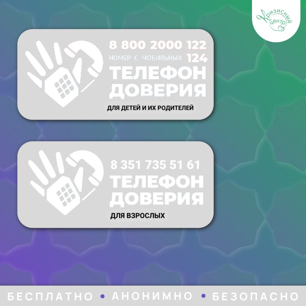 — Телефон доверия для взрослых: +7(351)735-51-61