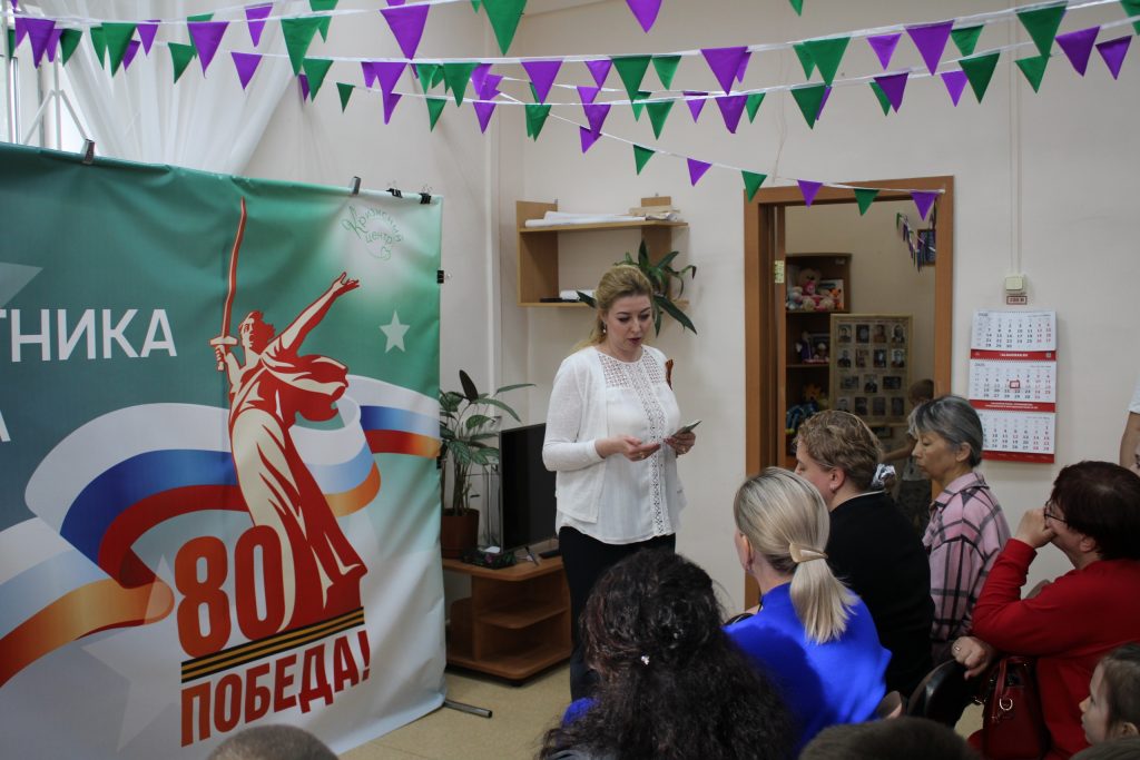 15 мая в рамках празднования 80-летия Победы на базе Кризисного центра состоялось мероприятие «Точка притяжения», которое началось с тёплых слов директора Евгении Антиповой. Она рассказала участникам встречи об уже реализованных направлениях работы отделения психологической помощи для участников СВО, а также о том, какие форматы работы ждут семьи участников СВО в будущем.